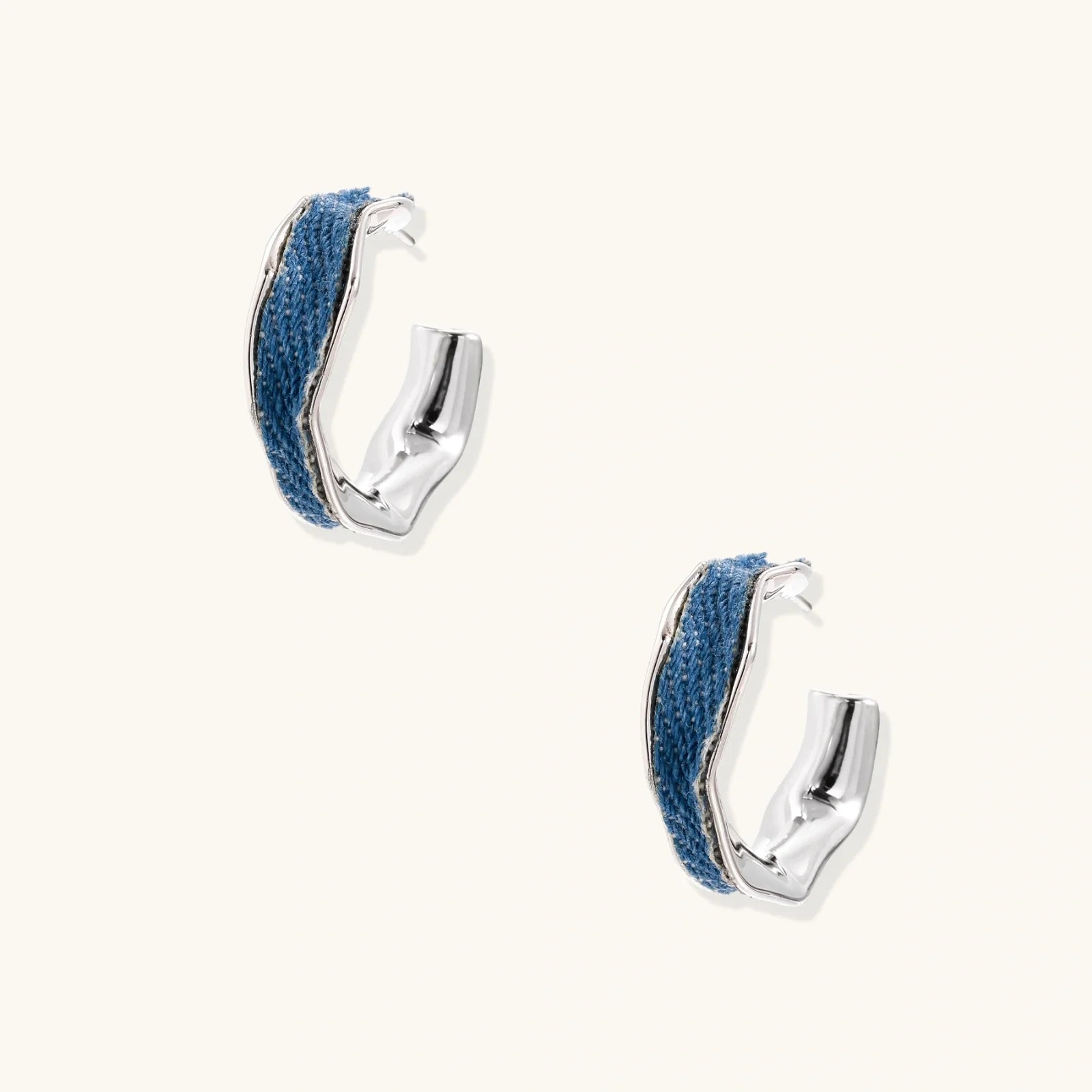 Vintage Denim Huggies | Upcycled Denim Mini-Hoops
